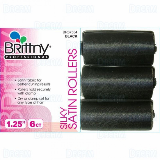 Brittny Professional 1.25″ Silky Satin Rollers Black, 6 Count