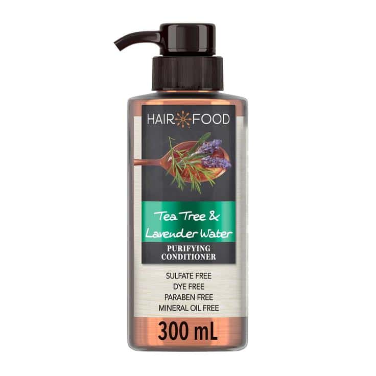 • HAIR FOOD Sulfate Free Conditioner Dye Free Purifying Treatment + Tea Tree & Lavender 300ml  is infused with simple ingredients—sulfate free, paraben free, dye free and mineral oil free